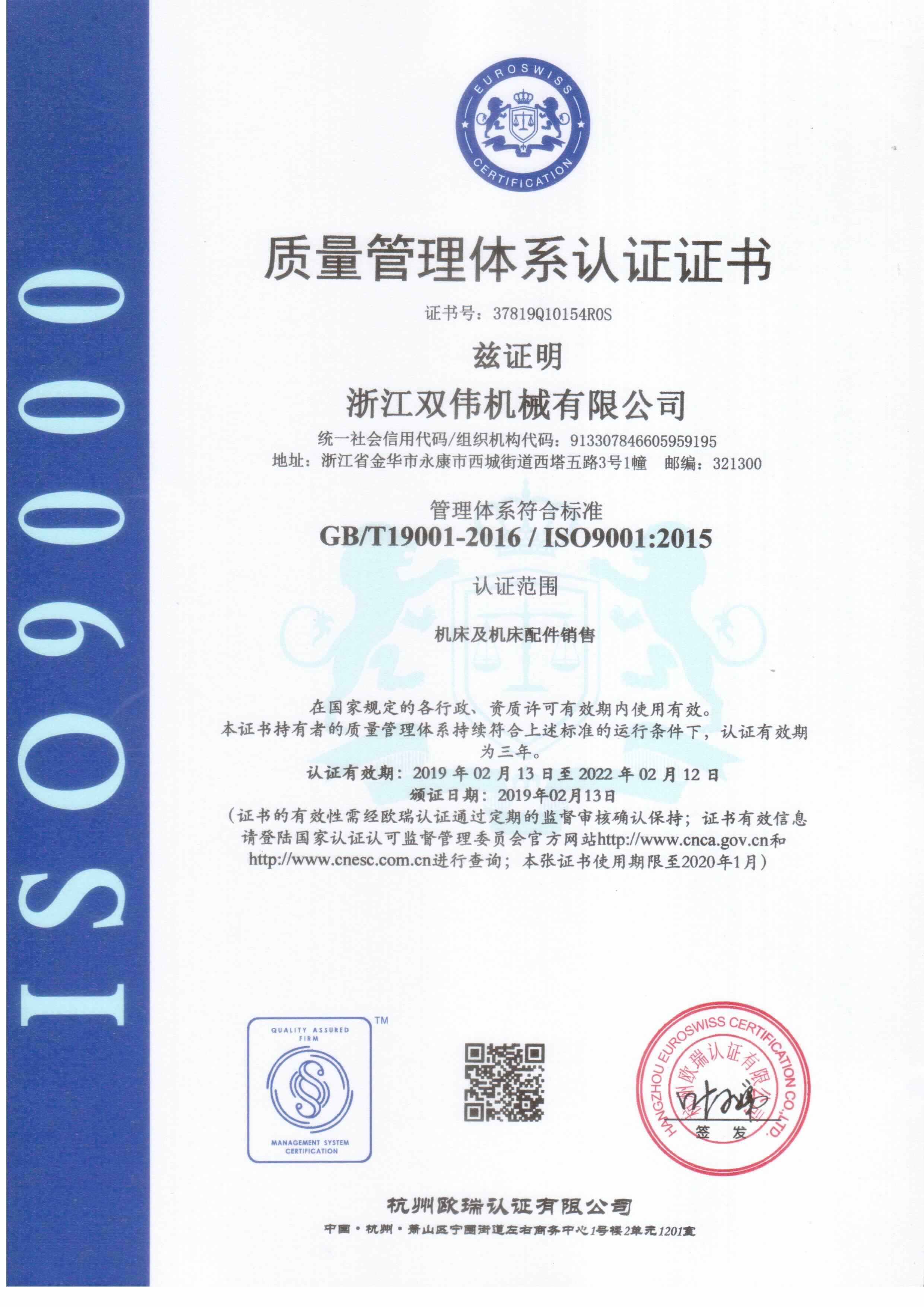 ISO9001Certificate of quality system